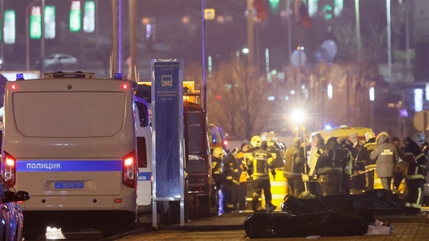 ومساء الجمعة اقتحم عدد من المسلحين مركز "كروكوس" وأطلقوا النار على الجمهور من مسافة قريبة وألقوا قنابل حارقة، ما تسبب في اندلاع حريق ضخم في المبنى.