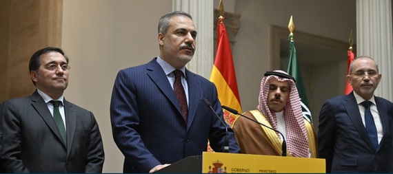 وفي إطار دعوة وجهتها إسبانيا بمناسبة اعترافها بدولة فلسطين، التقى فيدان وأعضاء مجموعة الاتصال المشكلة من منظمة التعاون الإسلامي والجامعة العربية، مع رئيس الوزراء الإسباني بيدرو سانشيز اليوم الاربعاء في العاصمة مدريد.