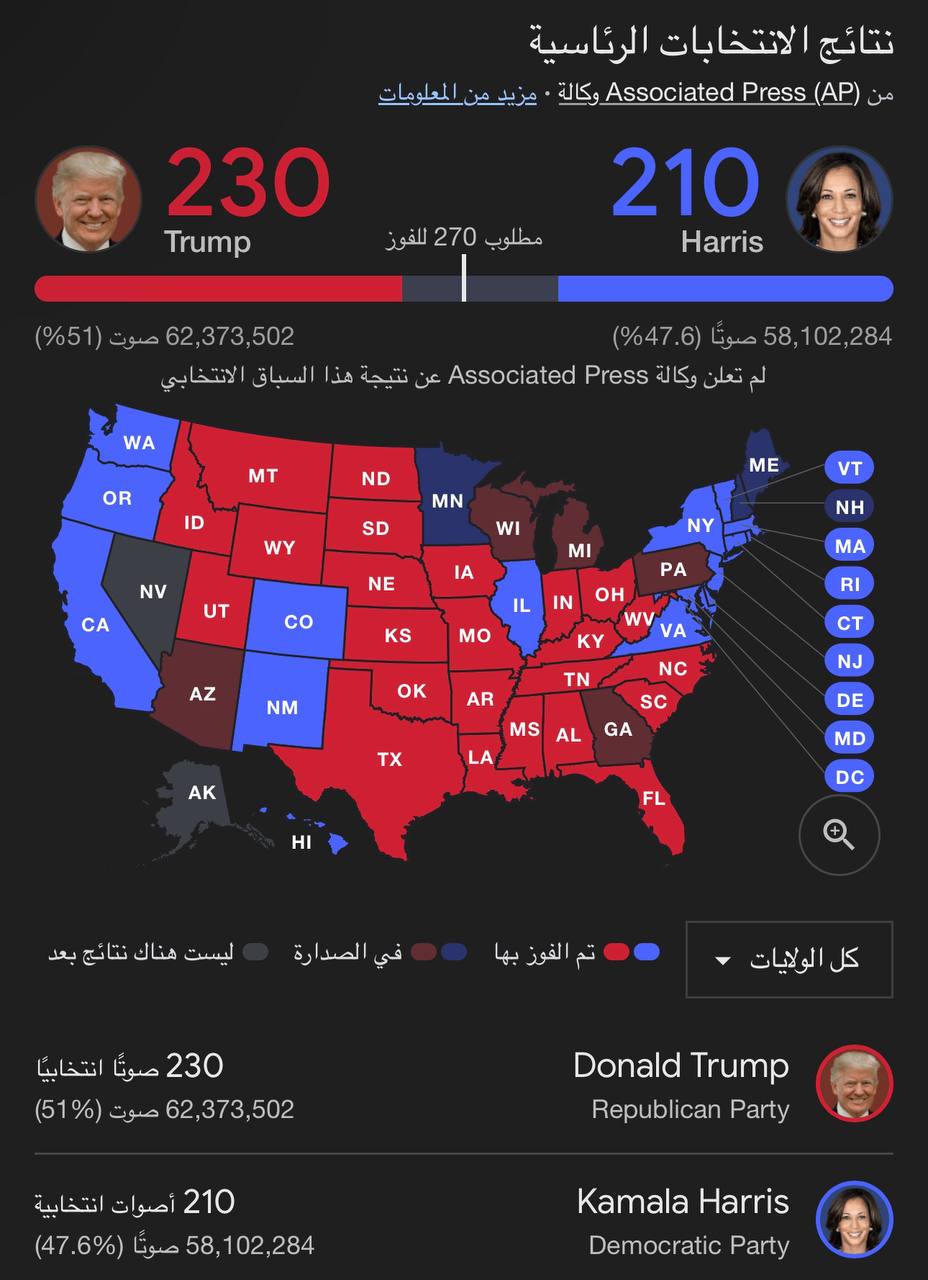 230ترامب 210هاريس نسبة الحسم 270اشترك في قناة وكالة انباء براثا على التلجرام https://telegram.me/buratha
