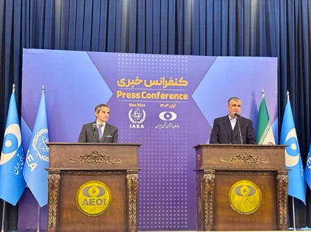 وذكر غروسي خلال مؤتمر صحفي مشترك مع رئيس هيئة الطاقة الذرية الإيرانية محمد إسلامي عقب محادثات بين الطرفين: "أنا سعيد جدًا بوجودي في طهران. رحلتي مهمة جدًا لأنها تتم في الوضع المعقد الحالي".