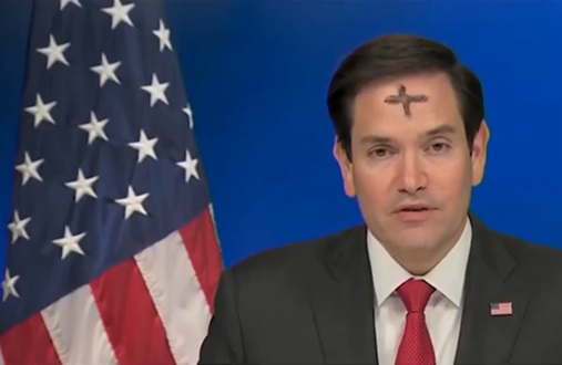 وظهر عدد من المسؤولين الأمريكيين وعلى جباههم صليب من الرماد والذي يرمز إلى، بدء موعد الصوم عند المسيحيين، من بينهم روبيو، وعلى جبهته صليب من الرماد خلال مقابلة مع شبكة فوكس نيوز الامريكية.
