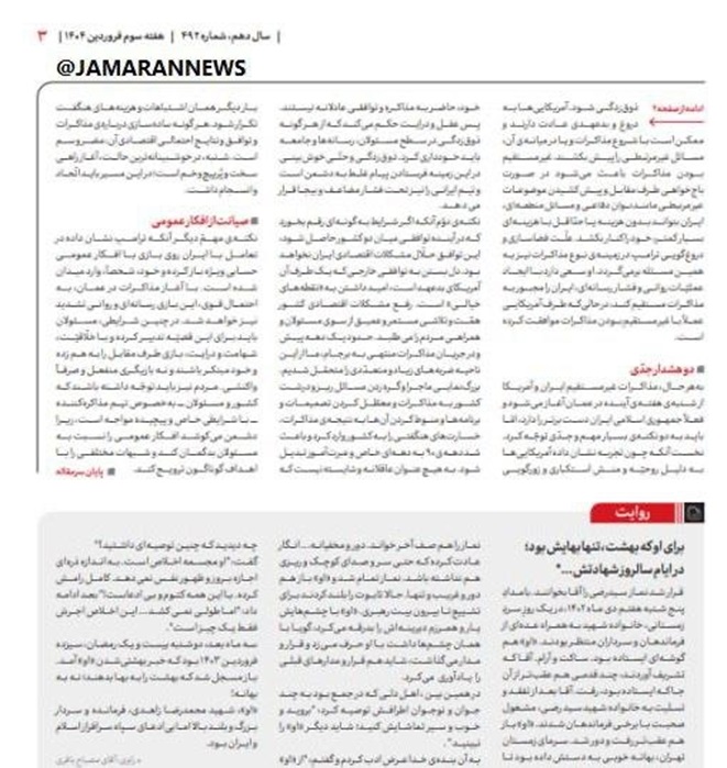 وأشارت النشرة الإيرانية إلى أن "اعتماد التفاوض غير المباشر يُنظر إليه على أنه مناورة تكتيكية تحفظ لإيران مرونة التفاوض دون التزام علني".