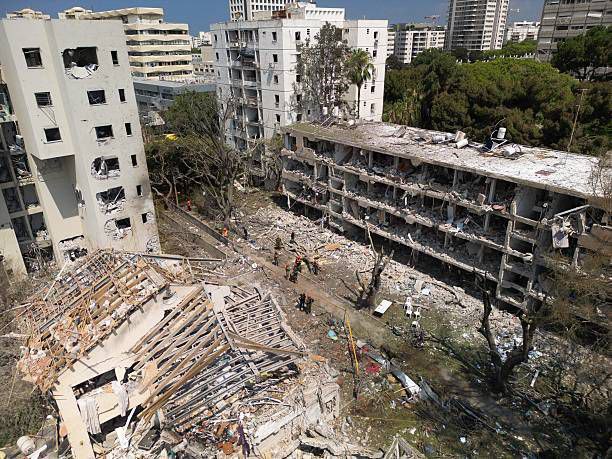 أحد أحياء تل أبيب عقب سقوط صاروخ إيراني