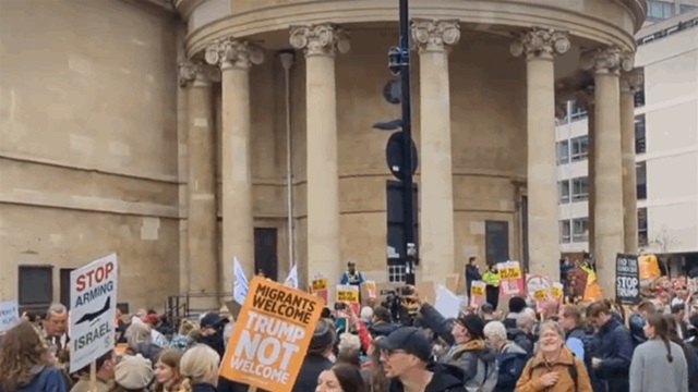 شهد وسط العاصمة البريطانية، اليوم الاربعاء، مظاهرات حاشدة احتجاجا على الزيارة الرسمية التي يقوم بها الرئيس الأمريكي ترامب إلى المملكة المتحدة وهي الثانية من نوعها بعد زيارته عام 2019.