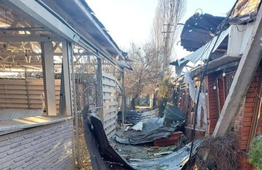 كذلك أعلن فلاديمير سالدو حاكم مقاطعة خيرسون التي انضمت إلى روسيا جنوب شرق أوكرانيا، أن الهجوم وقع ليلة رأس السنة باستخدام ثلاث طائرات مسيرة إحداها محملة بمواد حارقة ما تسبب بحريق كبير التهم المبنى حيث احتفل المدنيون برأس السنة.