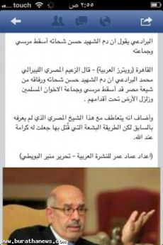 البرادعي يقول ان دم الشهيد حسن شحاته أسقط مرسي وجماعته