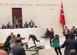 بالفيديو.. عراك دامي وصراخ داخل البرلمان التركي