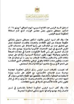 استقالة الحكومة المصرية وتكليف مدبولي بتشكيل حكومة جديدة