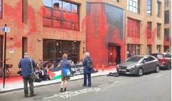 رش مقر حزب العمال البريطاني بالطلاء الأحمر احتجاجاً على دعم المحتل الصهيوني