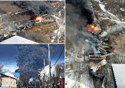 كارثة بيئية تصيب مدينة امريكية سببها خروج قطار شحن عن مساره كان يحوي مواد كيمياوية والسلطات تتكتم على الامر
