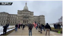 مسلحون يتظاهرون أمام مبنى الكابيتول في ميشيغان