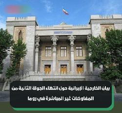 الخارجية الإيرانية تصدر بيانا حول انتهاء الجولة الثانية من المفاوضات غير المباشرة في روما