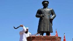 تركي معمم يهاجم تمثالا لأتاتورك بمنجل