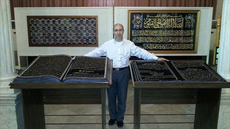وكانت RT قد أجرت، في يوليو/تموز 2013، حوارا مع الخطاط السوري أثناء عرضه المصحف المطرز بمعرض في دبي.