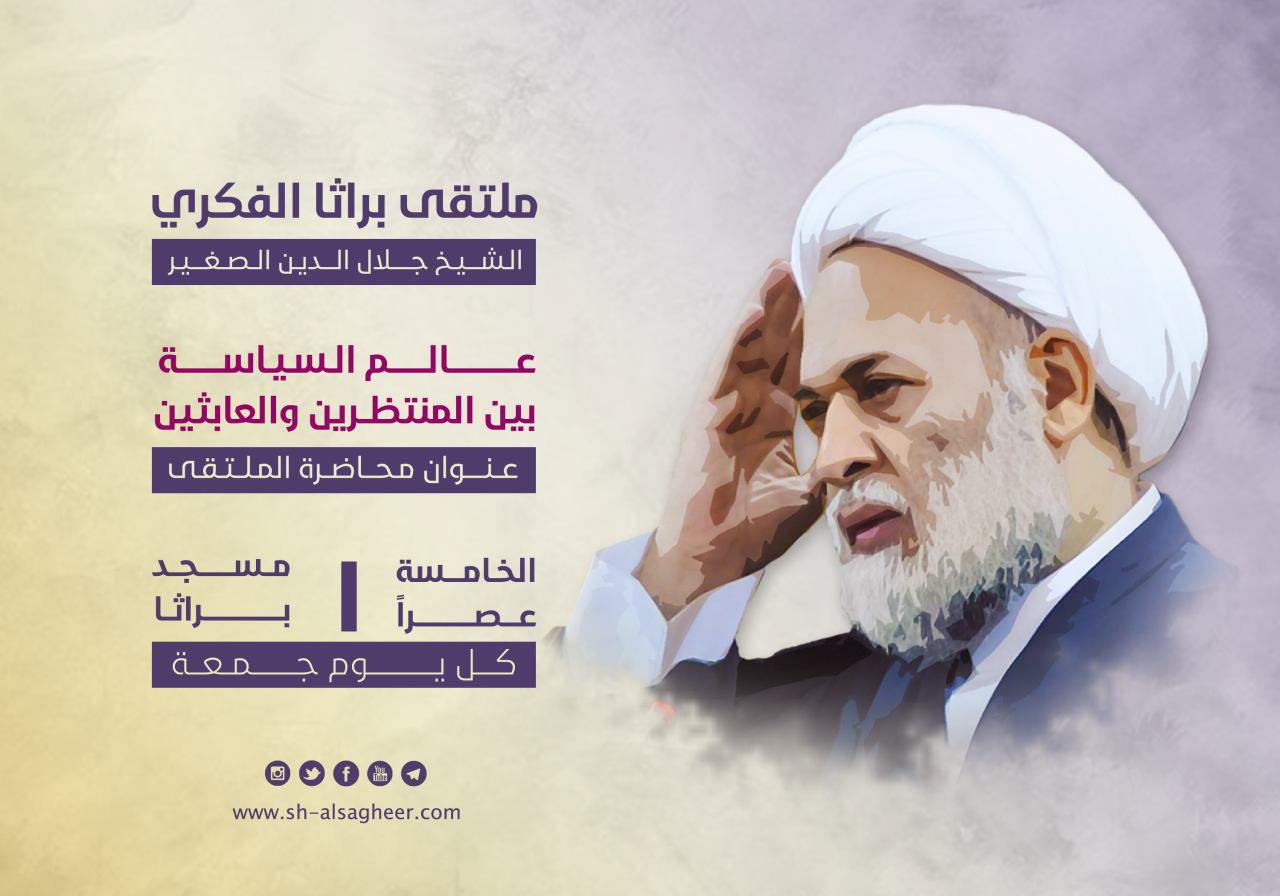 ضمن جهود سماحة الشيخ جلال الدين الصغير في التثقيف للقضية المهدوية ، والتعبئة للإنتظار المهدوي يلقي سماحته بحثا بعنوان" عالم السياسة بين المنتظرين والعابثين "