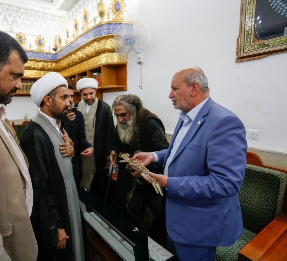 أعلنت العتبة العلوية، أن وفداً من باكستان قدم سيفا وبردة نادرين الى مرقد الأمام علي [ع] بمناسبة عيد الغدير.