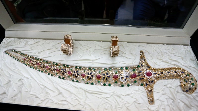 وأضاف النجفي، ان "الهدية تشمل السيف المصنوع يدوياً من نصف كيلوغرام من الذهب و300 قطعة من الأحجار الكريمة النادرة" مشيرا الى ان "مدة عمل هذا السيف استغرقت ما يقارب الأربعين يوما كما أبلغنا الوفد الباكستاني".