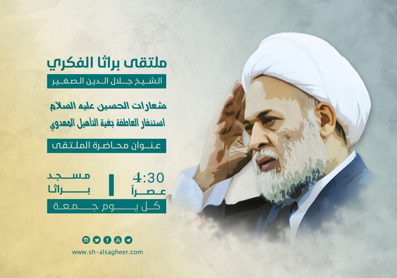 ضمن سلسلة البحاث المهدوية التي يلقيها سماحة الشيخ جلال الدين الصغير ، سيكون عنوان محاضرة ملتقى براثا الفكري ليوم غد الجمعة هو" شعارات الحسين عليه السلام استنفار العاطفة بغية التأهيل المهدوي"