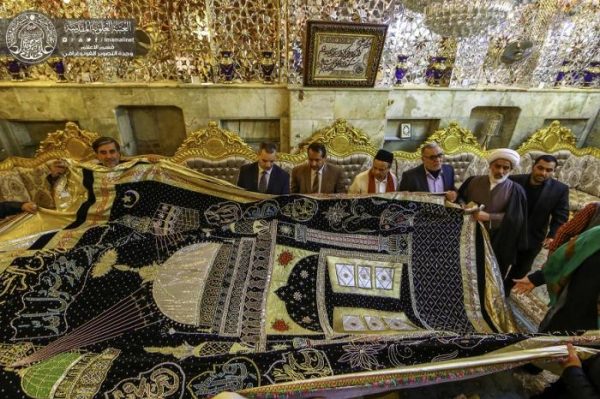 وقال رئيس الهيئة الشيخ ابراهيم البديري للمركز الاعلامي للعتبة المقدسة ” ان وفد المؤمنين متعدد الجنسيات القادم من العاصمة البريطانية لندن بادر الى تقديم بردة ثمينة مرصعة بالأحجار الكريمة التي لا تقدر بثمن مشترطين ان توضع لعدة أيام فوق الضريح الطاهر لأمير المؤمنين الامام علي بن أبي طالب (صلوات الله وسلامه عليه ) ثم يتم ادراجها ضمن الهدايا المقدمة للضريح الطاهر الموجودة لدى الهيئة”.