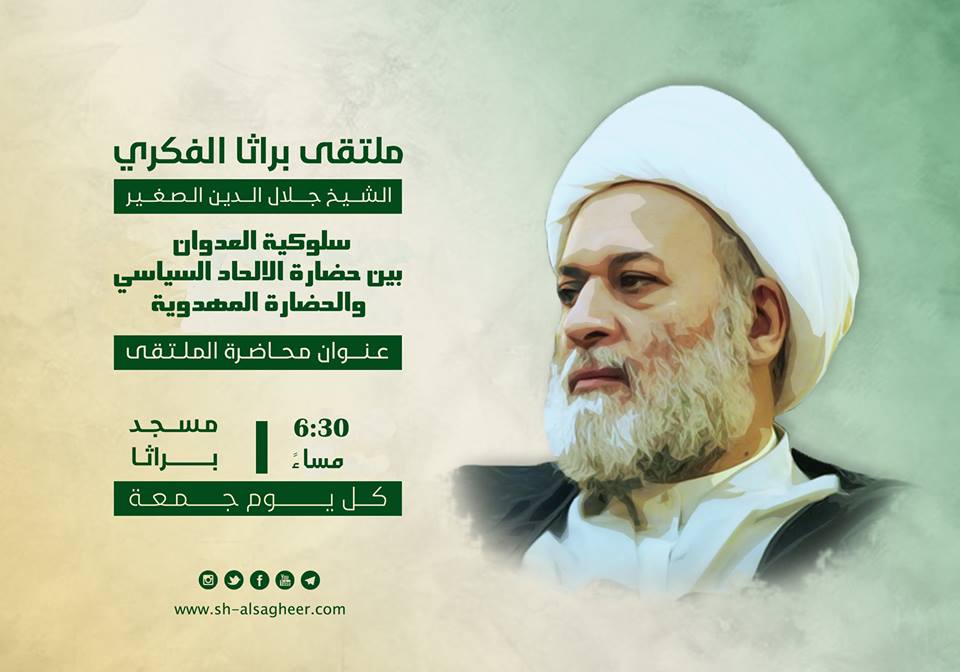 ضمن سلسلة ابحاث سماحة الشيخ جلال الدين الصغير والمتعلقة بالقضية المهدوية والتعبئة للظهور المبارك؛ يلقي سماحته محاضرة بعنوان "سلوكية العدوان بين حضارة الالحاد السياسي والحضارة المهدوية"