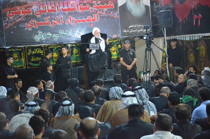 احيى سماحة الشيخ الصغير ليلة العاشر من المحرم تبعا لعادته السنوية في مواكب المعزين في منطقة عوفي في الحلة ،