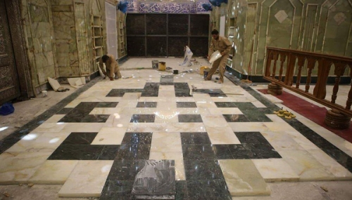 واوضح الصائغ ان "الاعمال الجارية في المشروع تتمثل برفع المرمر القديم، ورفع أجزاء من الخرسانة القديمة وإصلاح المتضرّر منها ومن ثم معالجة الأرضيّة وتشقّقاتها باستخدام موادّ خاصّة، وصبّ خرسانة جديدة بمواصفات معينة استخدمت فيها موادّ إنشائيّة تساعد على التصاقها بالأرضيّة القديمة وأخرى تمنع الرطوبة.