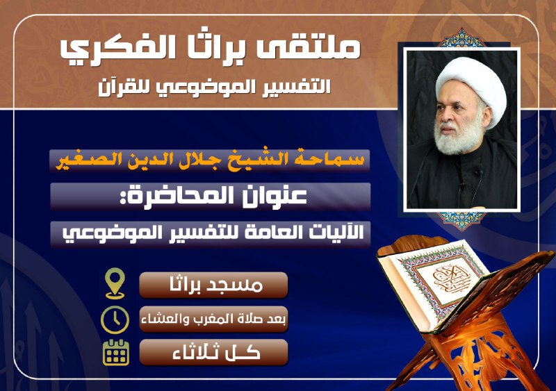 سيكمل سماحة الشيخ الصغير في محاضرة مساء غد الثلاثاء حديثه عن الآليات العامة التي تعتمد في التفسير القرآني، وذلك في ثاني جلسات ملتقى براثا القرآني الذي ابتدأ به منذ الثلاثاء الماضي وذلك في جامع براثا من بعد صلاتي المغرب والعشاء