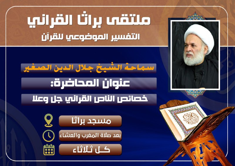 في محاضرته الاولى أشار سماحة الشيخ الى خمسة شخصيات يجب ان تكون مهيمنة على اي عملية تفسير للقرآن، وهذه الشخصيات لها ظهورها الاعظم في هذه العملية، وشرع في المحاضرة السابقة بالتحدث عن الشخصية الاولى المتعلقة بالناص القرآني وهو الله جل وعلا، وفي محاضرة اليوم سيكون له حديثه عن خصائص الناص القراني جل وعلا التي يجب ان تستحضر في عملية التفسير، وذلك في ملتقى براثا القراني