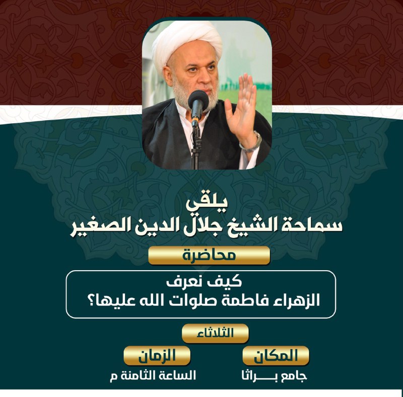 كيف نعرف الزهراء فاطمة صلوات الله عليها؟ هو موضوع محاضرة سماحة الشيخ الذي سيلقيه مساء يوم غد الثلاثاء في الساعة الثامنة ، وذلك بعد محاضرته في التفسير الموضوعي