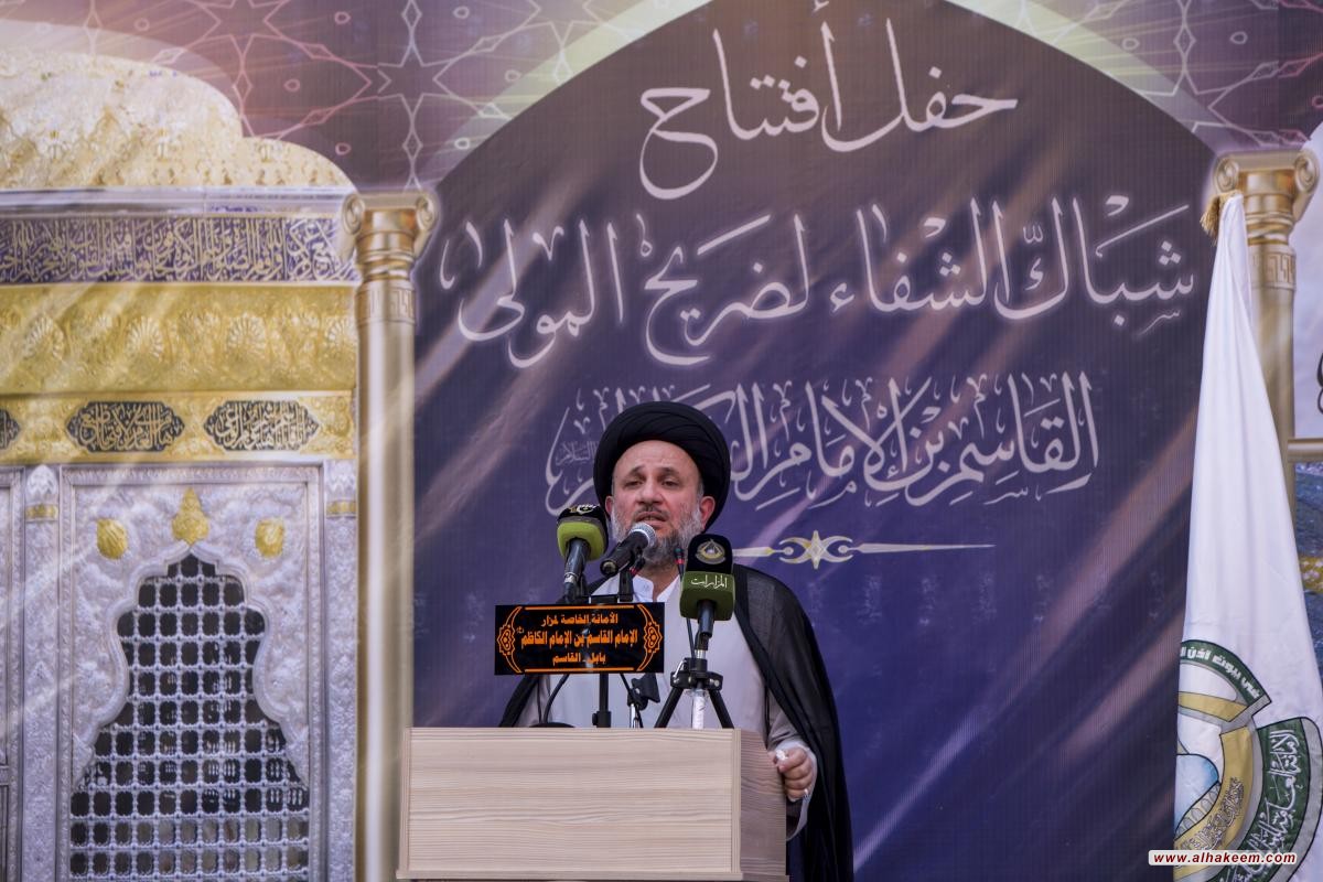 شارك ممثل المرجع الديني الكبير السيد محمد سعيد الحكيم (مدّ ظله)، سماحة السيد عز الدين الحكيم حفل الافتتاح المهيب لشباك مرقد القاسم بن الامام الكاظم (عليه السلام) في قضاء القاسم جنوبي محافظة بابل.