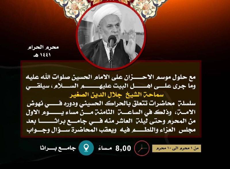 الشيخ جلال الدين الصغير يلقي سلسلة محاضرات خلال العشرة ايام الاولى لشهر محرم الحرام
