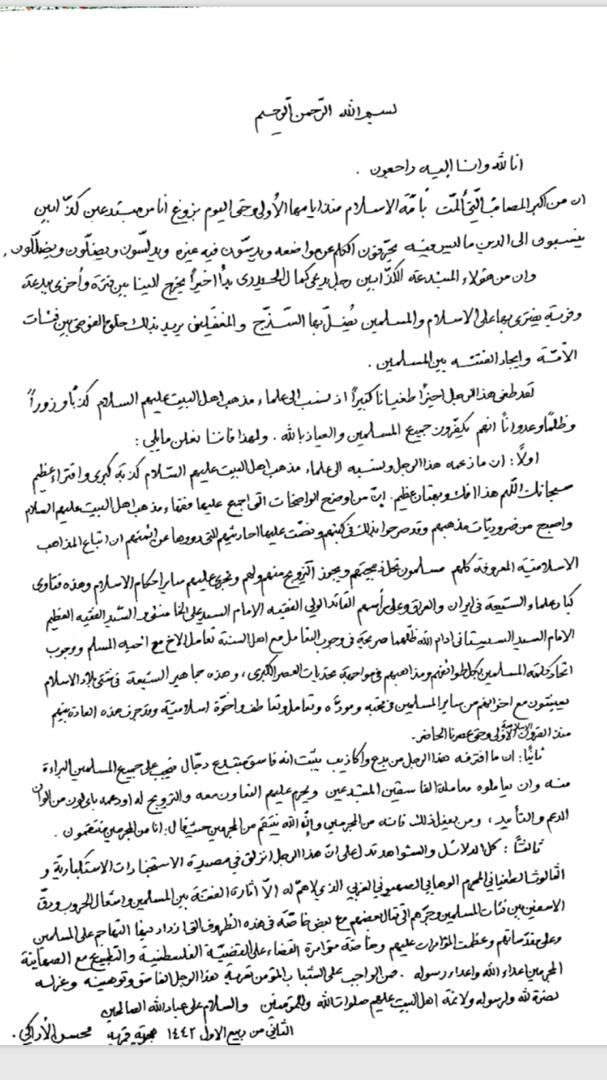 اصدر عضو المجلس الاعلى لشورى الحوزات العلمية وعضو رئاسة جماعة المدرسين في الحوزة العلمية بقم بيانا مهما ردا على الفرية الكبرى التي افتراها كمال الحيدري