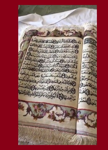 ورغم أنًه تمً من قبل حياكة آيات من القرآن الكريم إلاً إنً هذا الاثر يتفرد بمواصفات لم تحصل من قبل. الحياكة بخيوط الحرير.وقد عرضت عدة دول أسعارا خيالية لشرائه ووضعه في بعض متاحفها.