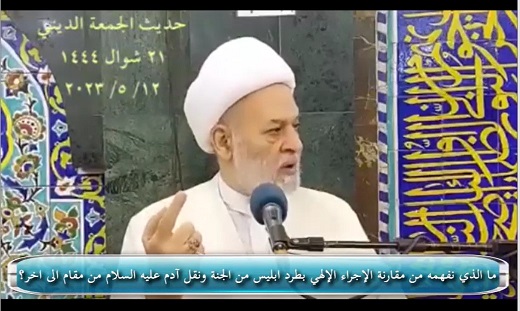 الشيخ جلال االدين الصغير : ما الذي نفهمه من مقارنة الإجراء الإلهي بطرد ابليس من الجنة ونقل آدم عليه السلام من مقام الى اخر؟
