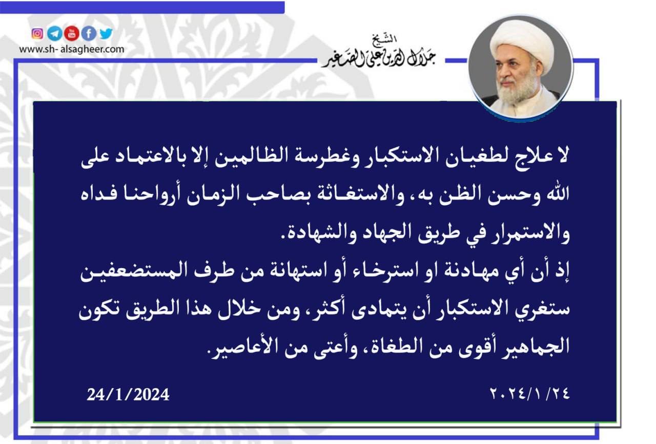 الشيخ جلال الدين الصغير : لا علاج لطغيان الاستكبار وغطرسة الظالمين الا بالاعتماد على الله وحسن الظن به