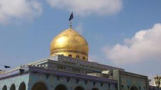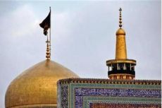 راية العزاء الحسيني ترتفع فوق قبة مرقد الإمام الرضا(ع)