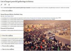 وكيبيديا: زيارة الأربعين في كانون الأول 2013 اكبر التجمعات السلمية في التاريخ