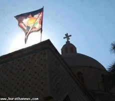 فوتوغراف..(إمام لكل البشر)..في عاشوراء الفائت رفع قساوسة أحدى كنائس بغداد راية الإمام الحسين عليه السلام على كنيستهم...