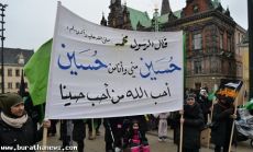 مسيرة الاربعينية في مدينة مالمو السويدية تتواصل مع كربلاء وتوزع الورود على المارة تعريفا بالحسين عليه السلام