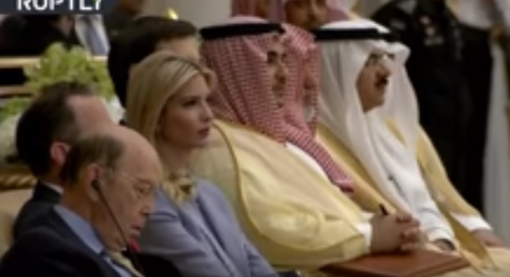 وكان الوزير يجلس خلال الاجتماع في الرياض بجانب كريمة ترامب إيفانكا التي تشغل منصب مستشار الرئيس حين وضع السماعات على أذنيه وغط في النوم.
