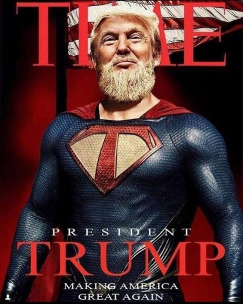 ونشر نجل ترامب صورة الصفحة الأولى من مجلة "تايم"، وتضمنت صورة لوالده بلحية، ومرتدياً زي "سبايدر مان".