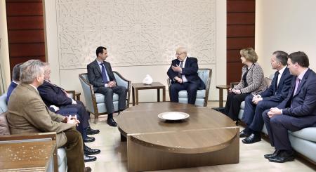 وأكد الرئيس أهمية الزيارات التي يقوم بها البرلمانيون وقادة الأحزاب الأوروبية من أجل تكوين صورة واقعية عما يجري في سورية تساعد بلدانهم في تصحيح سياساتها إزاء منطقتنا لافتا إلى أن الحرب الإرهابية التي يتعرض لها الشعب السوري فيها الكثير من الدروس للمنطقة والعالم والدليل على ذلك موجة الإرهاب التي ضربت مؤخراً العديد من الدول في أوروبا والعالم.