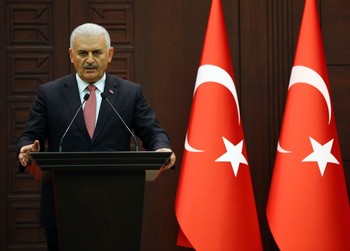 قال رئيس الوزراء التركي بن علي يلدريم يوم الأحد إن تركيا لن تسمح أبدا بقيام "دولة مصطنعة" في شمال سوريا في إشارة إلى المقاتلين الأكراد المدعومين من الولايات المتحدة الذين تسعى أنقرة لوقف تقدمهم.