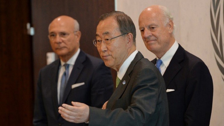 وقال بان كي مون في مؤتمر صحفي في ستراسبورغ:" شاهدت نبأ يفيد بأن روسيا والولايات المتحدة أوقفتا الحوار الآن.. ومن هنا سأتوجه إلى بروكسيل للمشاركة في مؤتمر حول أفغانستان وهناك ستتوفر لي الفرصة للقاء وزير الخارجية الأمريكي كيري وبعض الموظفين المسؤولين الروس من المستوى الرفيع ومن الاتحاد الأوروبي. من جانبي أدعو بإلحاح لاستئناف المباحثات بين الدولتين".