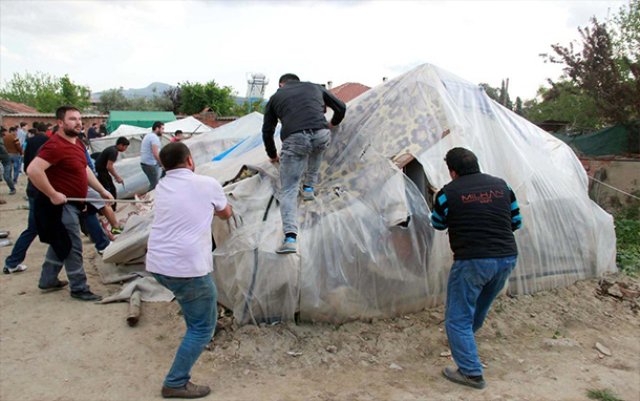 وتابعت أنه "بعد انقضاء الليلة المتوترة تجمّع صباح اليوم التالي (السبت) مجموعة تضم 300 من سكان الحي وأتجهوا إلى المنطقة التي يمكث فيها السوريين حاملين العصي، وفور علمهم بالأمر غادر السوريين الخيام وابتعدوا عن المنطقة بينما قامت المجموعة الغاضبة بشل حركة المرور بطريق توربالي – سلجوق وإحراق نحو 40 خيمة يمكث بها السورييون".