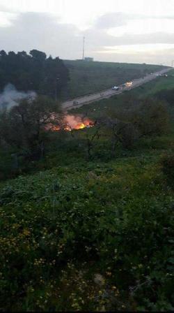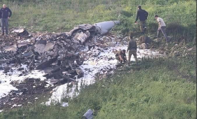 وأظهرت الصور احتراق بقية ركام الطائرة بعدما سقطت في شمال إسرائيل، كما بيّنت صور أخرى وجود سيارات إسعاف في منطقة يكسوها العشب.