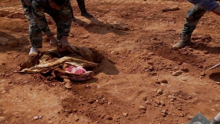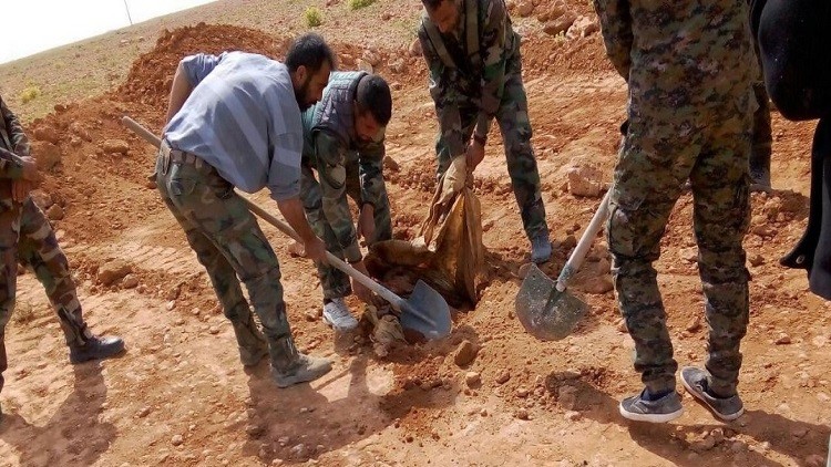 وذكرت وسائل إعلام محلية أن وحدات الجيش عثرت على مقبرتين في قرية الرهجان في ريف السلمية الشرقي بريف حماة.