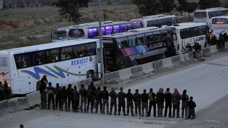 من ناحية أخرى، وفي سيناريو مرافق يمكن ربطه بعملية الإجلاء لخلق مشهد "هوليودي"، تجددت اشتباكات متقطعة على محاور في منطقة حوض اليرموك بريف درعا الغربي، بين "جيش خالد بن الوليد" المبايع لتنظيم "داعش" الارهابي من جهة، والفصائل الإسلامية المسلحة من جهة أخرى، دون معلومات عن خسائر بشرية، كما تم استهداف القوات السورية بالرشاشات الثقيلة في محور المنشية بدرعا البلد في مدينة درعا، من قبل الفصائل المقاتلة والإسلامية.