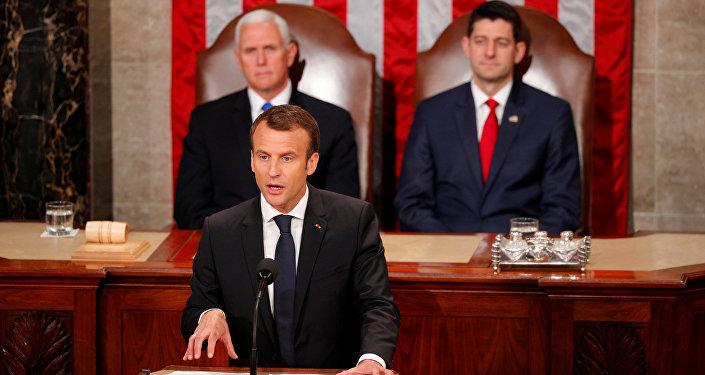 و قال ماكرون اليوم الأربعاء في خطاب أمام أعضاء الكونغرس الأمريكي في واشنطن "نحن نعمل معا على حل إنساني على المدى القصير على الأرض، ونساهم في تسهيل الوصول إلى حل سياسي دائم يضع حدا لهذا النزاع المأساوي".