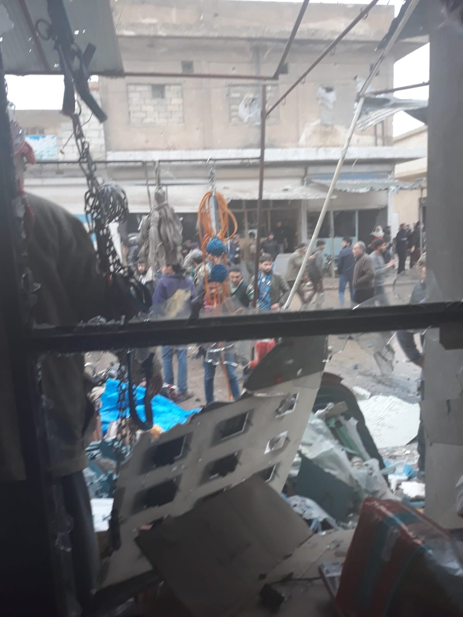 وأفاد ناشطون بأن التفجير استهدف مبنى ما يسمى بالمجلس المحلي في المدينة، وأودى بحياة ابنة رجل ضرير، كانت تقود والدها المكفوف في منطقة التفجير.